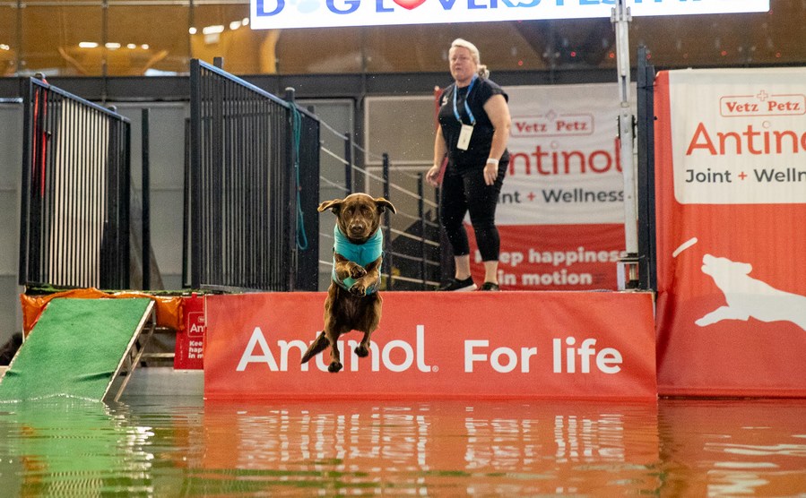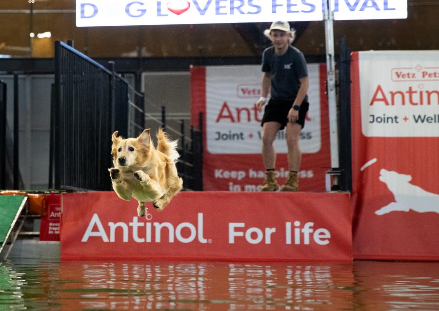 A dog is seen in a show during the Dog Lovers' Festival in Sydney, Australia on Aug. 26, 2023. (Xinhua/Hu Jingchen)