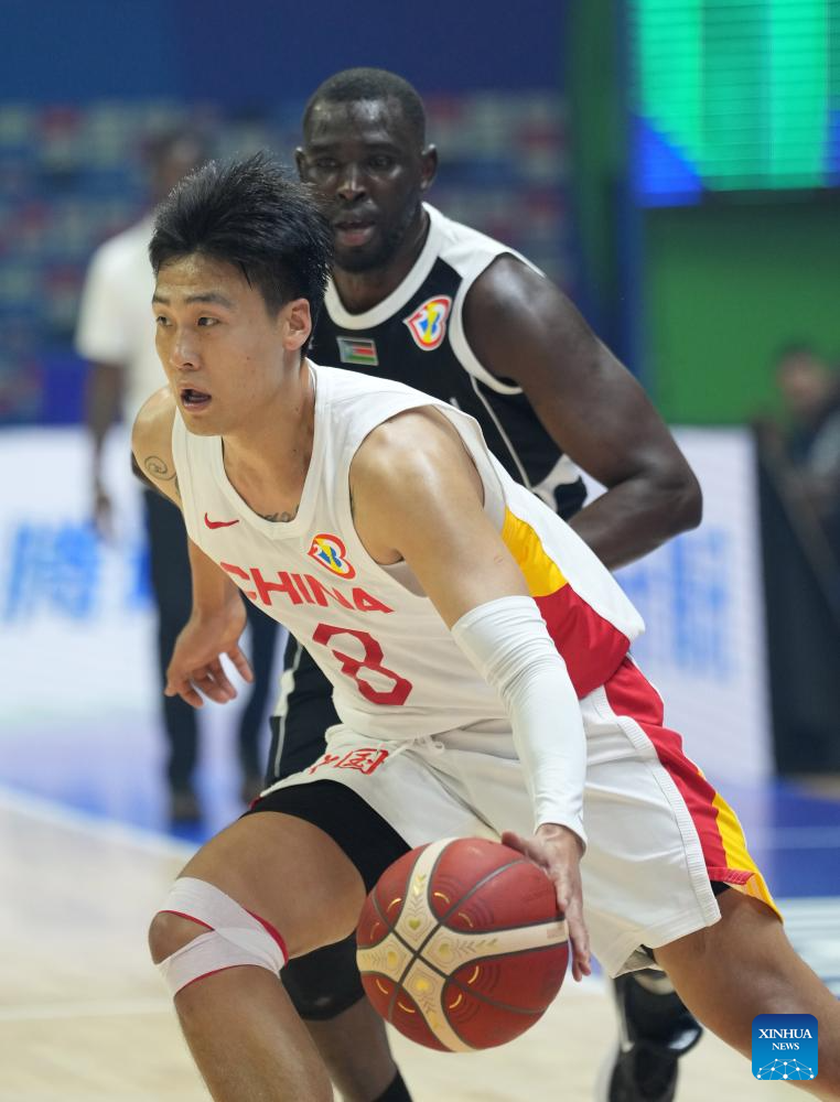 Zhao Rui (1st R) of China competes during the Group B match between China and South Sudan at the 2023 FIBA World Cup in Manila, the Philippines, on Aug. 28, 2023. (Xinhua/Wu Zhuang)