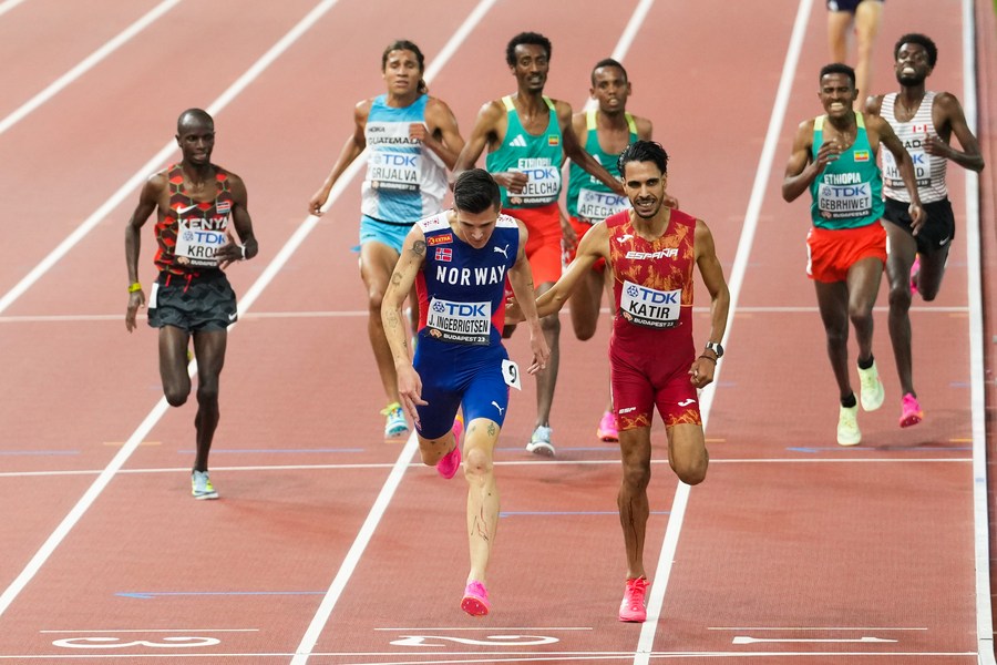 BUDAPEST, Aug. 27 (Xinhua) -- Norwegian standout Jakob Ingebrigtsen retained his men's 5,000m title on the final day of the World Athletics Championships here Sunday, while Victor Kiplangat of Uganda clinched the men's marathon.