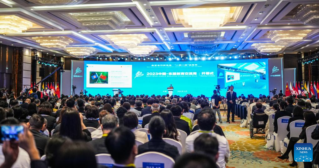 People attend the opening ceremony of the 2023 China-ASEAN Education Cooperation Week in Gui'an New Area, southwest China's Guizhou Province, Aug. 29, 2023. The 2023 China-ASEAN Education Cooperation Week kicked off here on Tuesday. (Xinhua/Tao Liang)