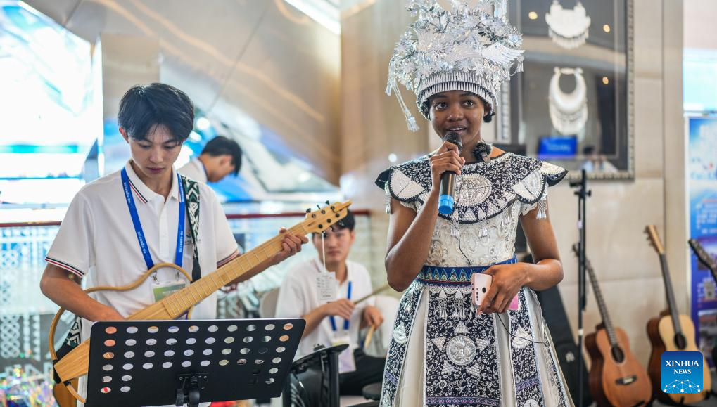 A foreign student sings a Chinese song during the 2023 China-ASEAN Education Cooperation Week in Gui'an New Area, southwest China's Guizhou Province, Aug. 29, 2023. The 2023 China-ASEAN Education Cooperation Week kicked off here on Tuesday. (Xinhua/Tao Liang)