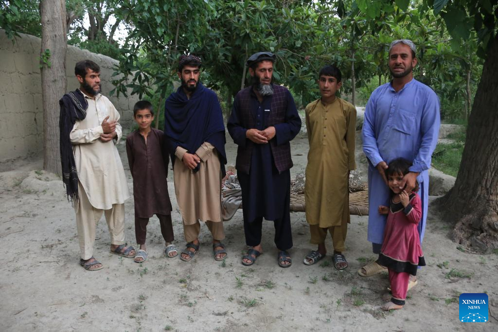 Mohammad Nasim (C) is seen with his family members in Chaparhar district in east Afghanistan's Nangarhar Province, May 15, 2023. (Photo by Saifurahman Safi/Xinhua)