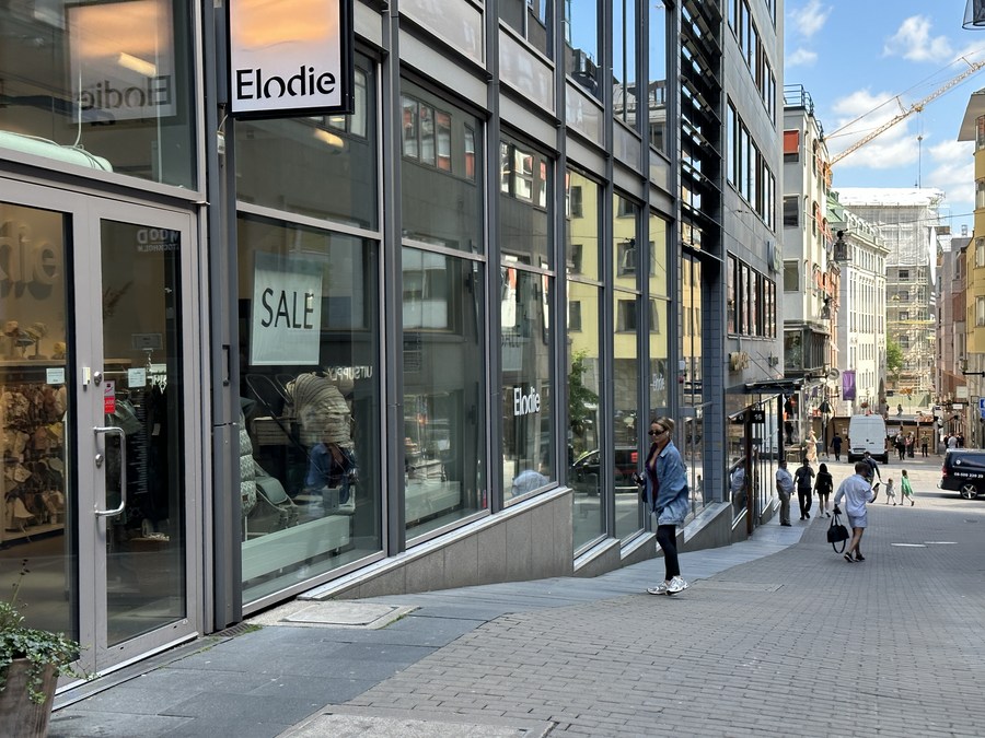 People walk in a commercial street in Stockholm, Sweden, June 22, 2023. (Xinhua/He Miao)