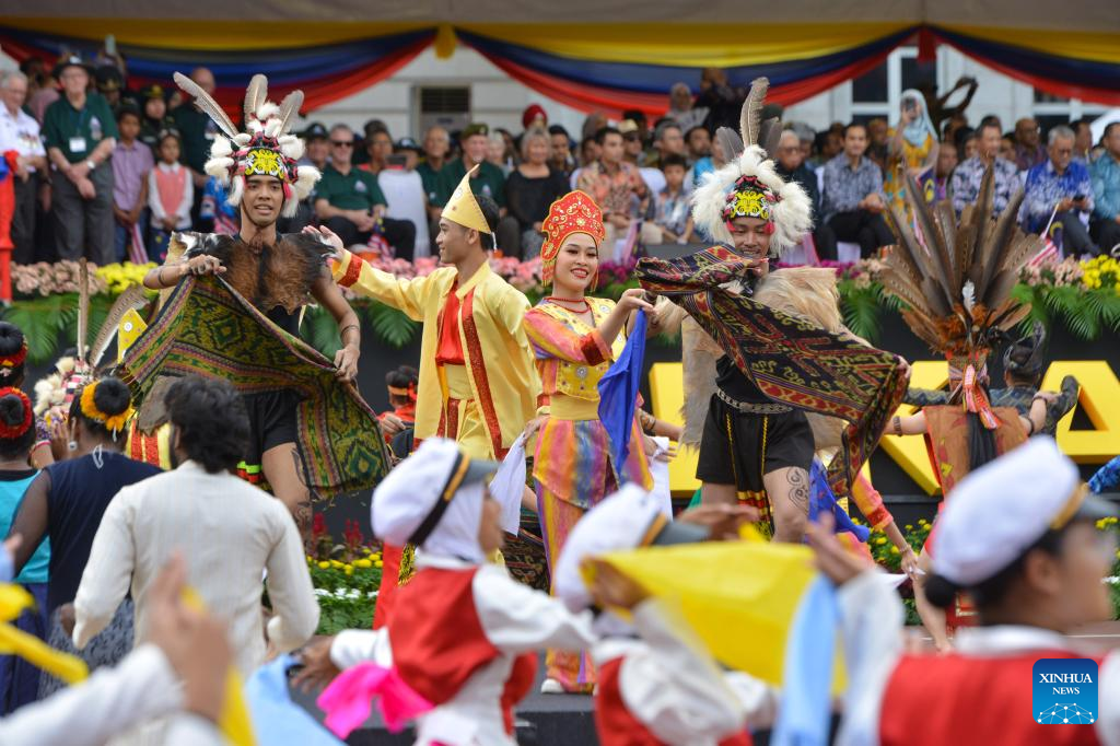 Actors perform during a celebration of the 66th anniversary of Malaysia's independence in Putrajaya, Malaysia, Aug. 31, 2023. Malaysia celebrated the 66th anniversary of its independence with parades, fireworks and large scale gatherings on Thursday under the theme of unifying ties between its diverse groups.