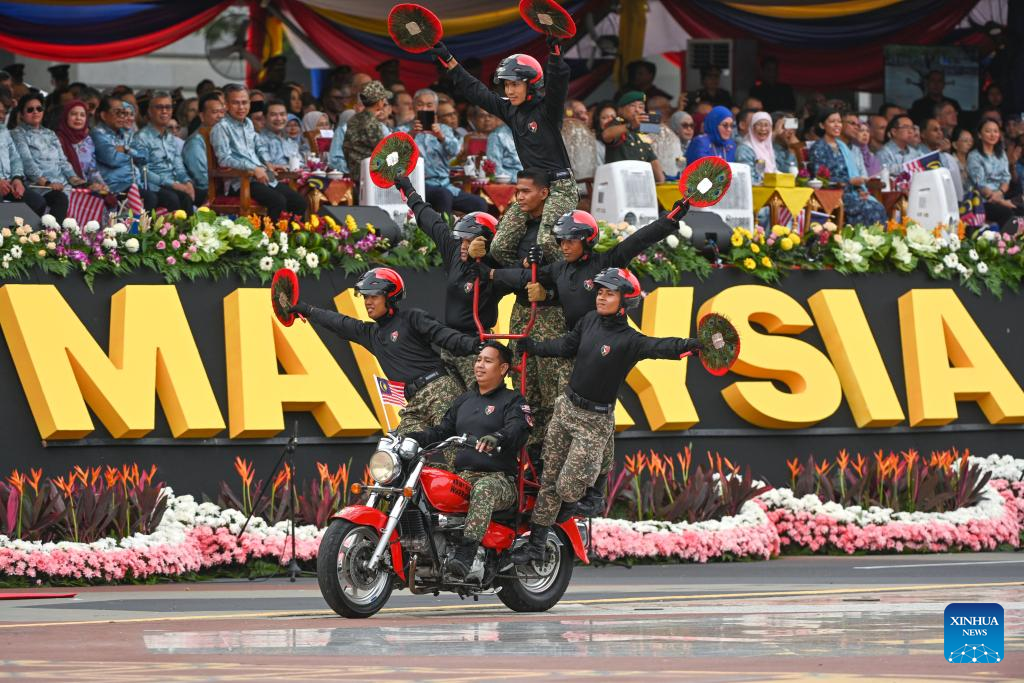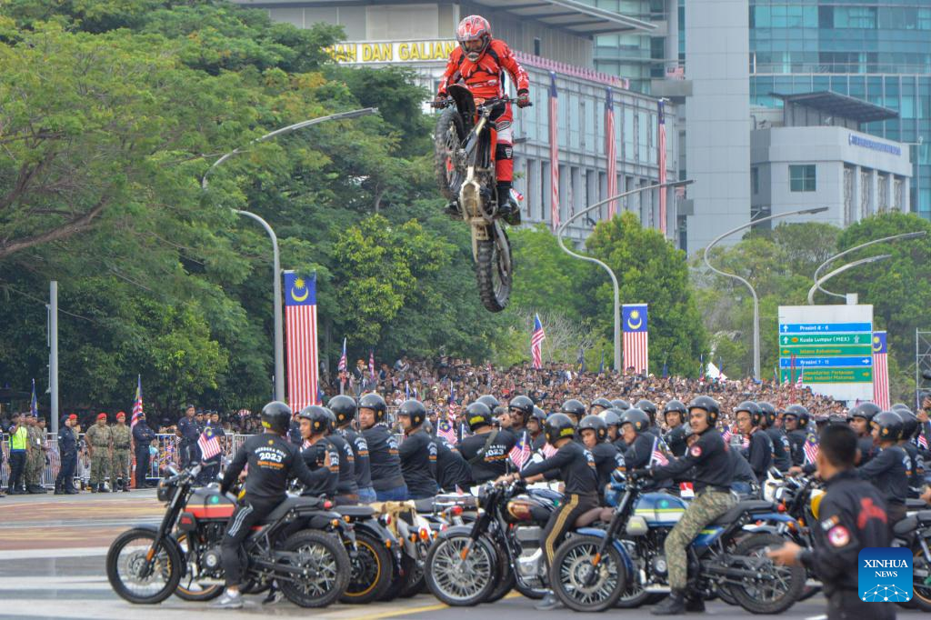 KUALA LUMPUR, Aug. 31 (Xinhua) -- Malaysia celebrated the 66th anniversary of its independence with parades, fireworks and large scale gatherings on Thursday under the theme of unifying ties between its diverse groups.