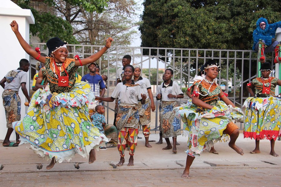 Performers dance during an international dance festival in Ouidah, Benin, Jan. 13, 2023. (Photo by Seraphin Zounyekpe/Xinhua)