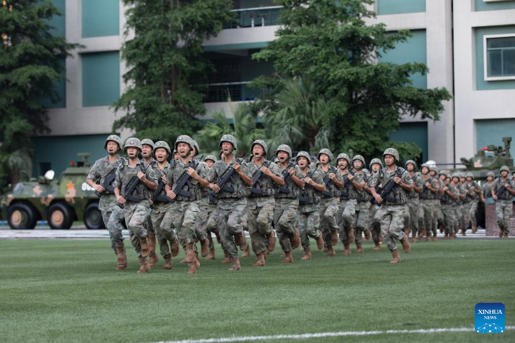 The Macao Garrison of the Chinese People's Liberation Army (PLA) conducts the 24th rotation of its members in south China's Macao, Aug. 31, 2023. (Photo by Chen Shuai/Xinhua)