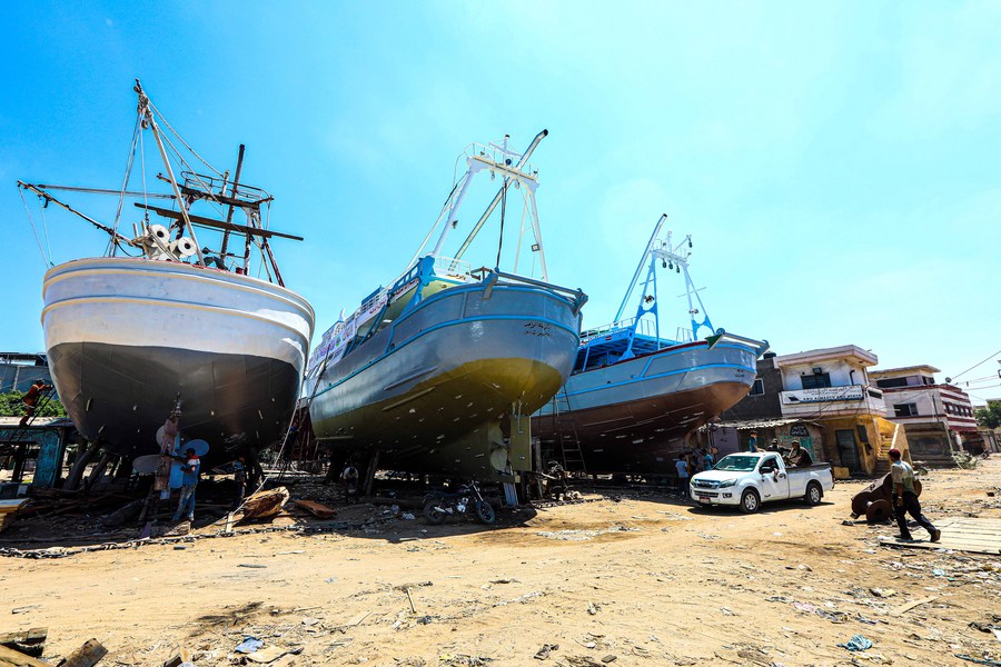 Not far away from al-Etreby's workshop, Mohammed Abu-Ataia, owner of another shipyard, was giving instructions to his workers who just started to build a new 36-meter-long steel fishing vessel.