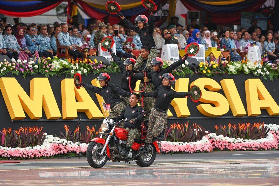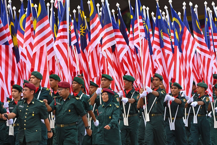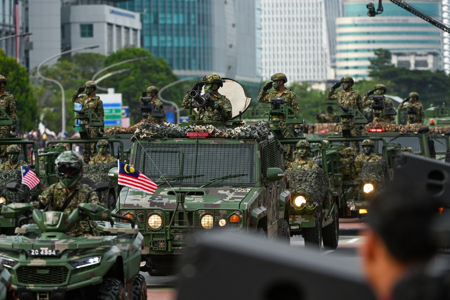 Soldiers attend a celebration of the 66th anniversary of Malaysia's independence in Putrajaya, Malaysia, on Aug. 31, 2023. (Photo by Chong Voon Chung/Xinhua)