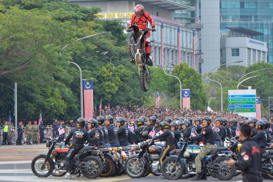 KUALA LUMPUR, Sept. 1 (Xinhua) -- Thousands of Malaysians thronged to the city of Putrajaya to celebrate the 66th anniversary of Independence Day with parades, fireworks and gatherings under the theme of unifying ties between diverse groups.