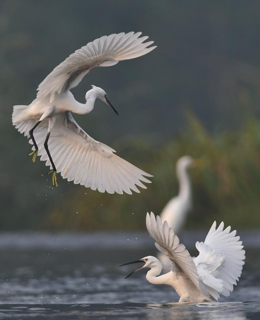 Egrets are seen in Shangshan Park in Tengzhou, east China's Shandong Province, Sept. 2, 2023. (Photo by Li Zhijun/Xinhua)