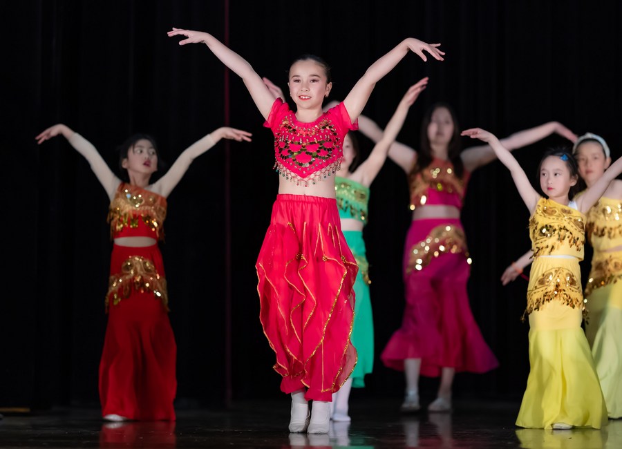 Students perform to celebrate Australia's first Chinese Language Day in Canberra, Australia, Sept. 1, 2023. (Photo by Chu Chen/Xinhua)