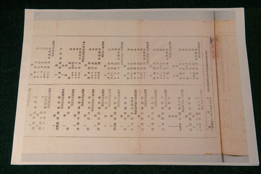 Six pages in length, and classified as a military secret, the rosters were compiled by the Japanese Kwantung Army in August 1940, and discovered in the National Archives of Japan as a result of the cooperation of the exhibition hall and Japanese scholar Seiya Matsuno.↳