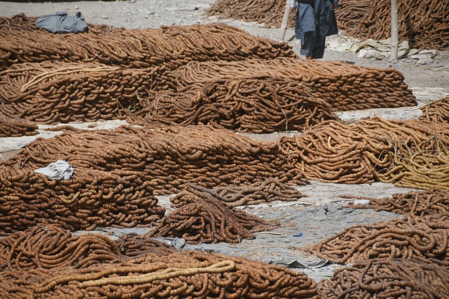 This photo taken on Sept. 4, 2023, shows dried figs at a market in Kandahar province, Afghanistan. (Photo by Arghand/Xinhua)