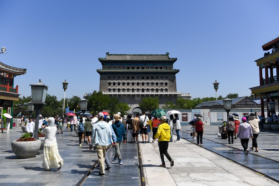 People visit the Qianmen street in Beijing, capital of China, July 6, 2023. (Xinhua/Ju Huanzong)