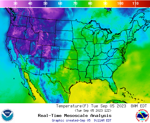 This graphic posted on the website of the U.S. National Weather Service (NWS) shows the temperature forecast for Sept. 5, 2023 across the United States. (Credit: NWS)