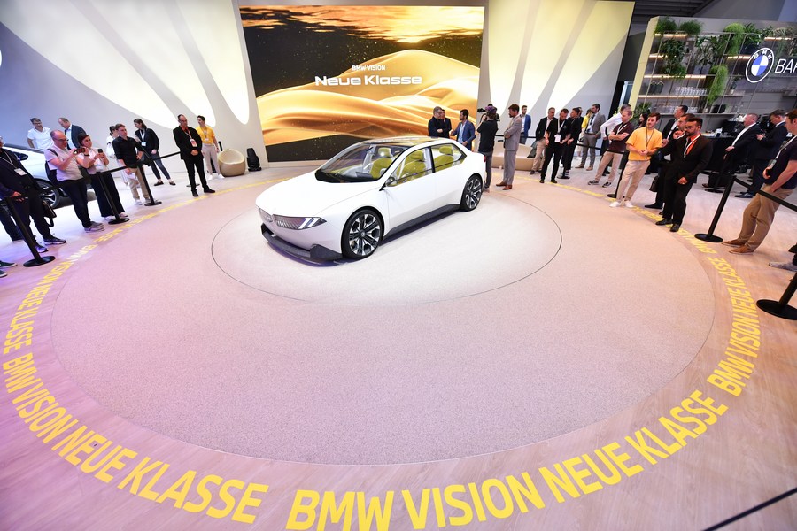 People look at a BMW Neue Klasse during the 2023 International Motor Show, officially known as the IAA MOBILITY 2023, in Munich, Germany, Sept. 5, 2023. (Xinhua/Ren Pengfei)