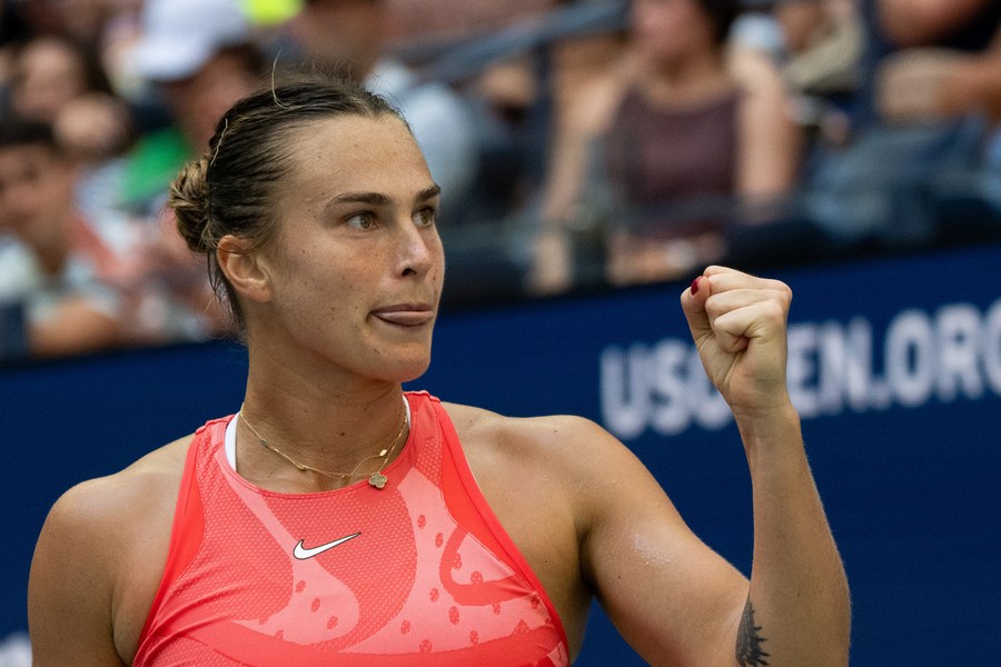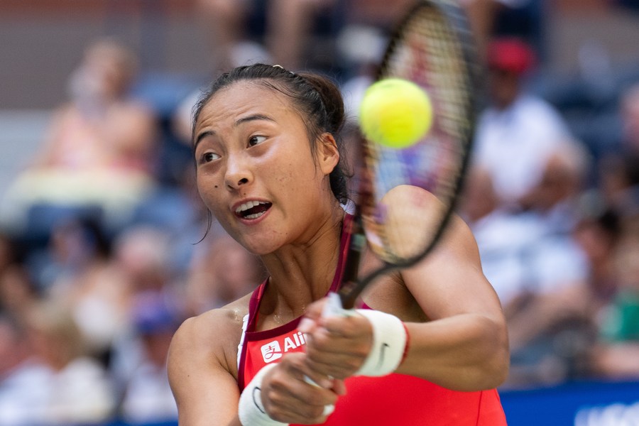 NEW YORK, Sept. 7 (Xinhua) -- China's rising star Zheng Qinwen was stopped in the U.S. Open quarterfinals, losing to world number two Aryna Sabalenka of Belarus 6-1, 6-4 here on Wednesday.