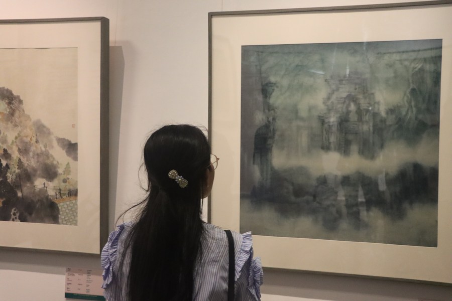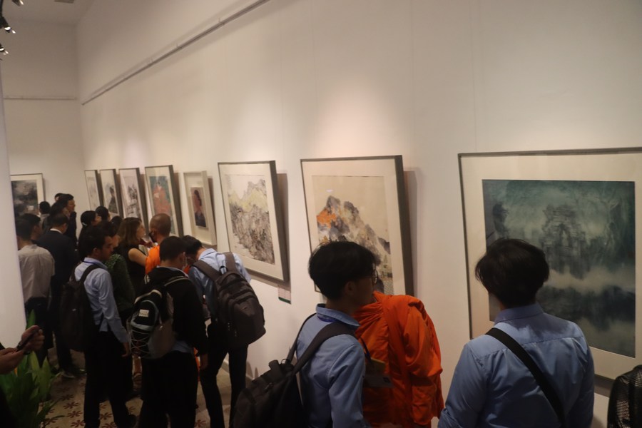 PHNOM PENH, Sept. 7 (Xinhua) -- Twenty pieces of Chinese traditional painting are on display at the National Museum of Cambodia (NMC) in the Cambodian capital, with the exhibition scheduled to run from Sept. 4 to 11.