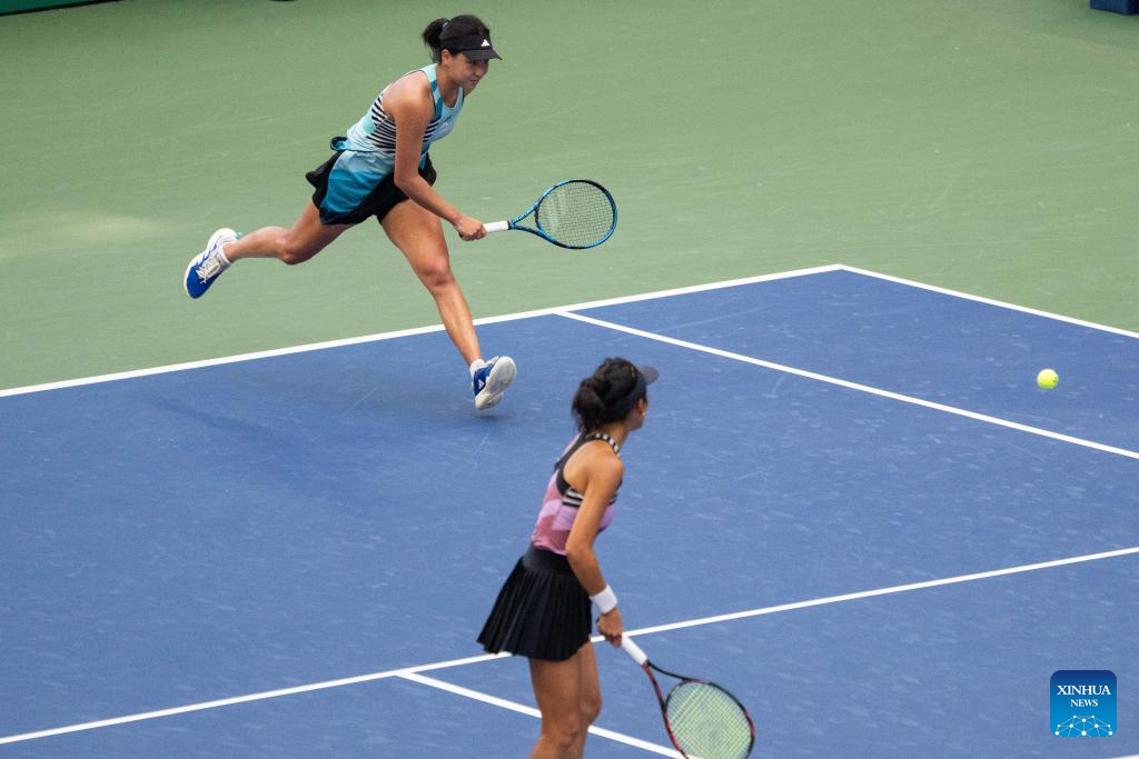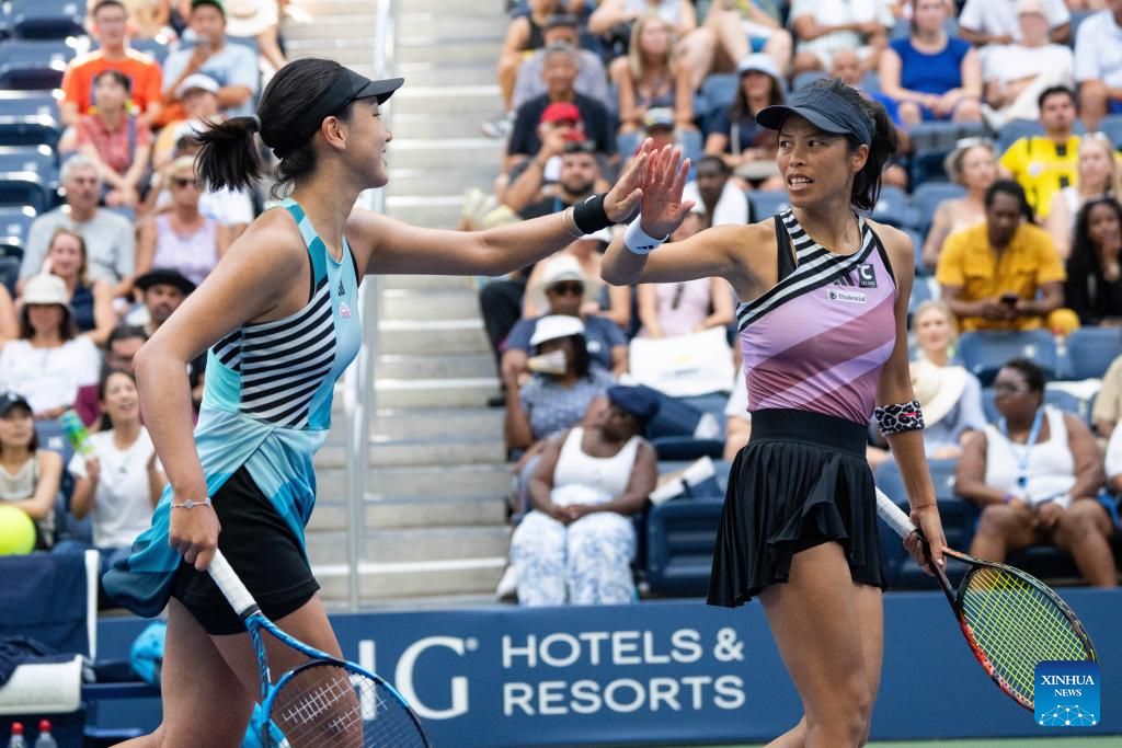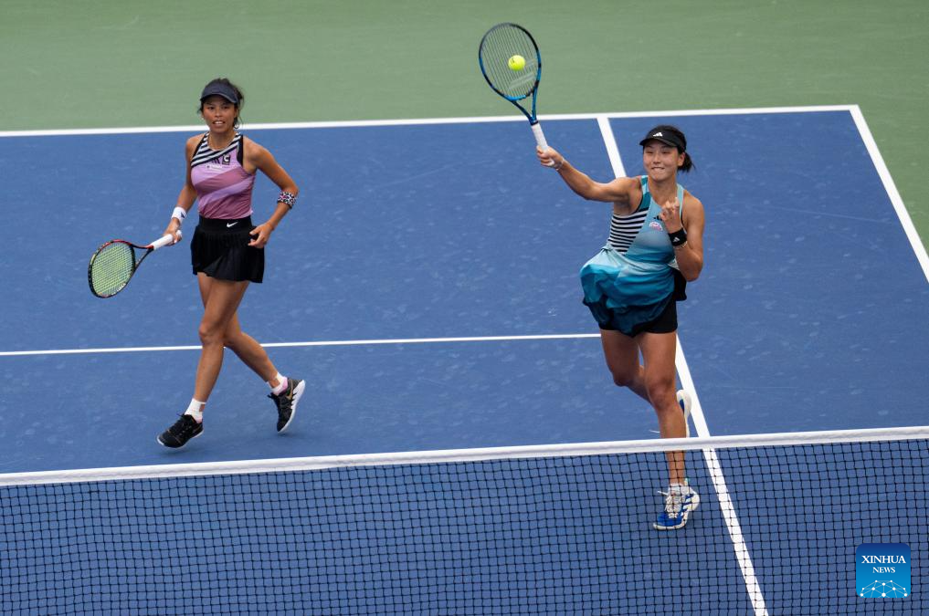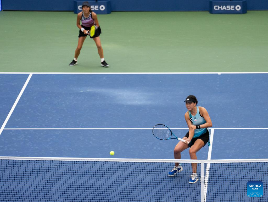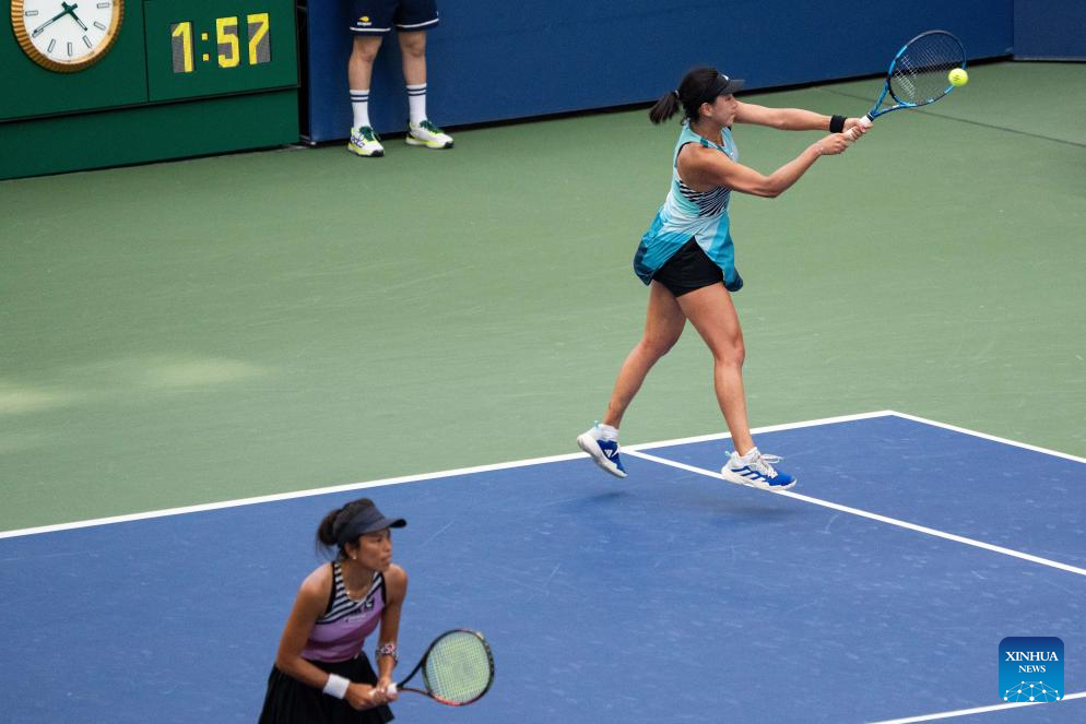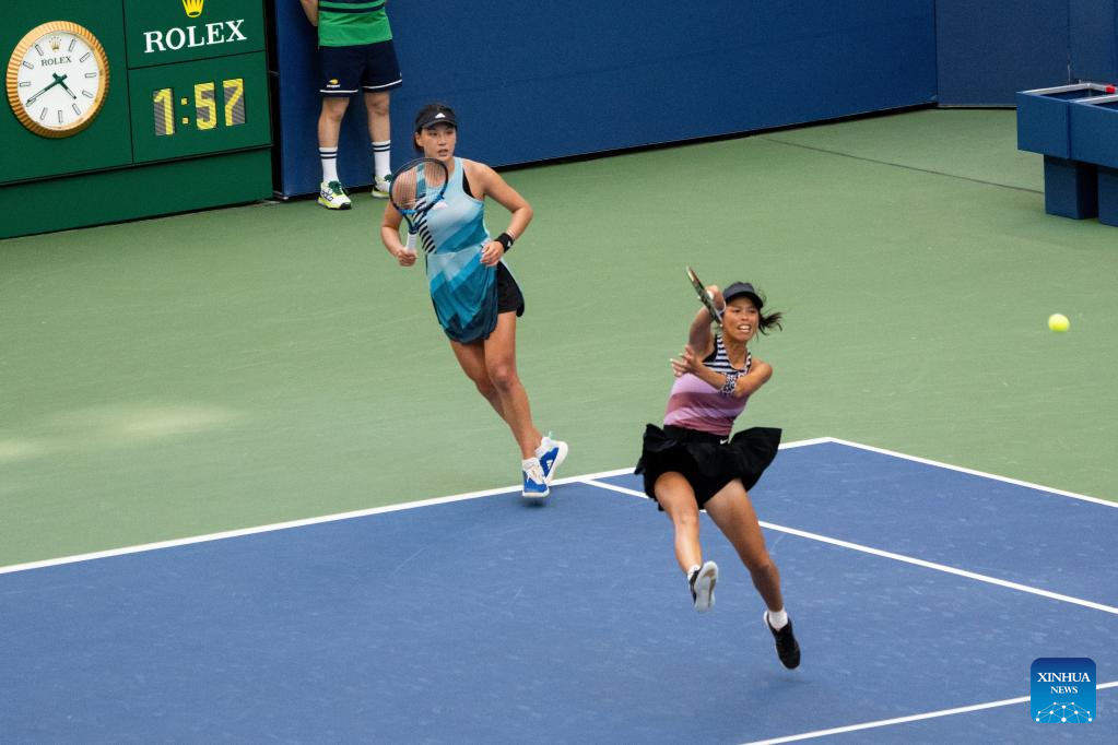 Wang Xinyu/Hsieh Su-Wei (R) compete during the women's doubles quarterfinal between Wang Xinyu of China/Hsieh Su-Wei of Chinese Taipei and Coco Gauff of the United States/Jessica Pegula of the United States at the 2023 US Open tennis championships in New York, the United States, Sept. 6, 2023. (Xinhua/Liu Jie)