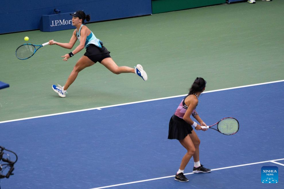 Wang Xinyu (R) /Hsieh Su-Wei compete during the women's doubles quarterfinal between Wang Xinyu of China/Hsieh Su-Wei of Chinese Taipei and Coco Gauff of the United States/Jessica Pegula of the United States at the 2023 US Open tennis championships in New York, the United States, Sept. 6, 2023. (Xinhua/Liu Jie)