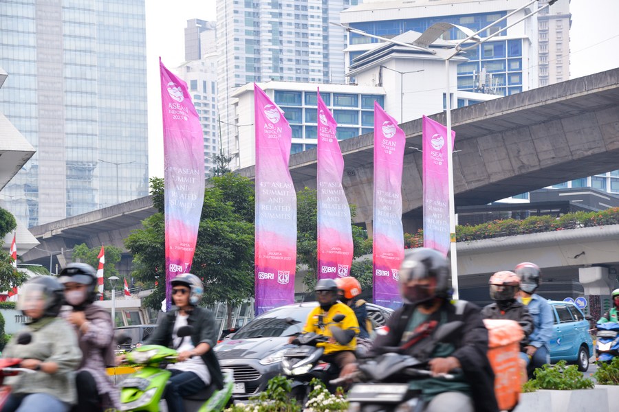 Banners for the 43rd summit of the Association of Southeast Asian Nations (ASEAN) are seen in Jakarta, Indonesia, Sept. 2, 2023. (Xinhua/Xu Qin)