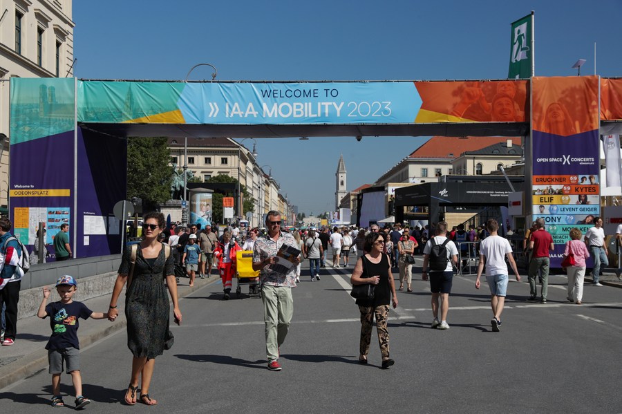 People visit the 2023 International Motor Show, officially known as the IAA MOBILITY 2023, in Munich, Germany, Sept. 8, 2023. (Xinhua/Zhang Fan)