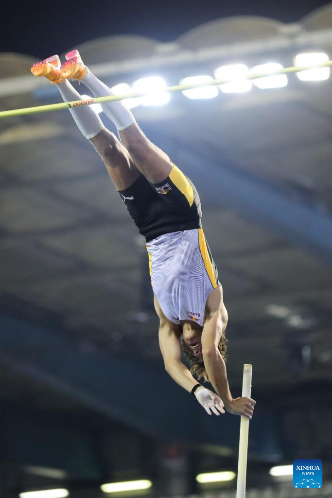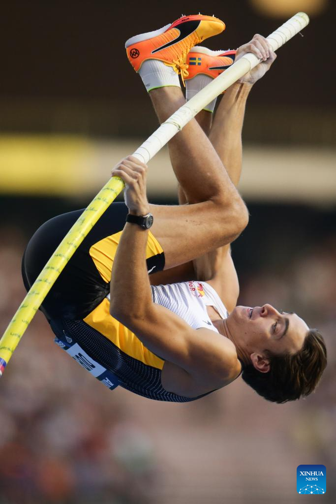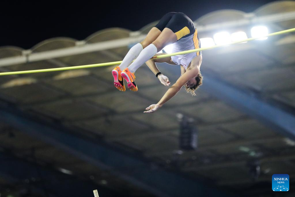 Armand Duplantis of Sweden competes during the men's pole vault final at the 2023 Diamond League athletics meeting in Brussels, Belgium, Sept. 8, 2023. (Xinhua/Zheng Huansong)
