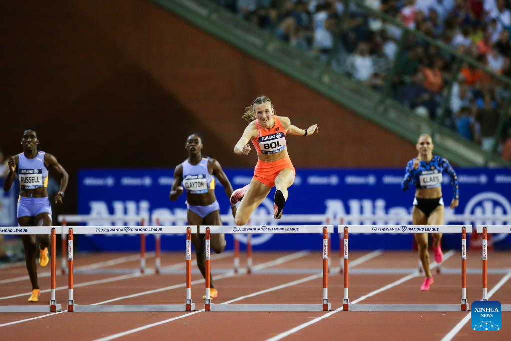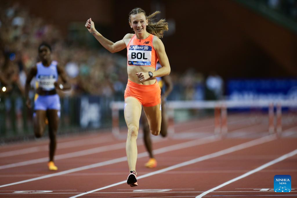 Femke Bol of the Netherlands competes during the women's 400m hurdles final at the 2023 Diamond League athletics meeting in Brussels, Belgium, Sept. 8, 2023. (Xinhua/Zheng Huansong)