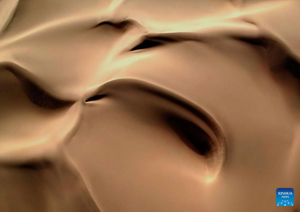 This aerial photo taken on Sept. 7, 2023 shows the scenery of a desert scenic spot in Makit County of Kashgar, northwest China's Xinjiang Uygur Autonomous Region. Makit County, located on the southwestern rim of the Taklimakan Desert, has taken advantage of its natural resources to develop tourism and provide jobs for the local people. (Xinhua/Li An)