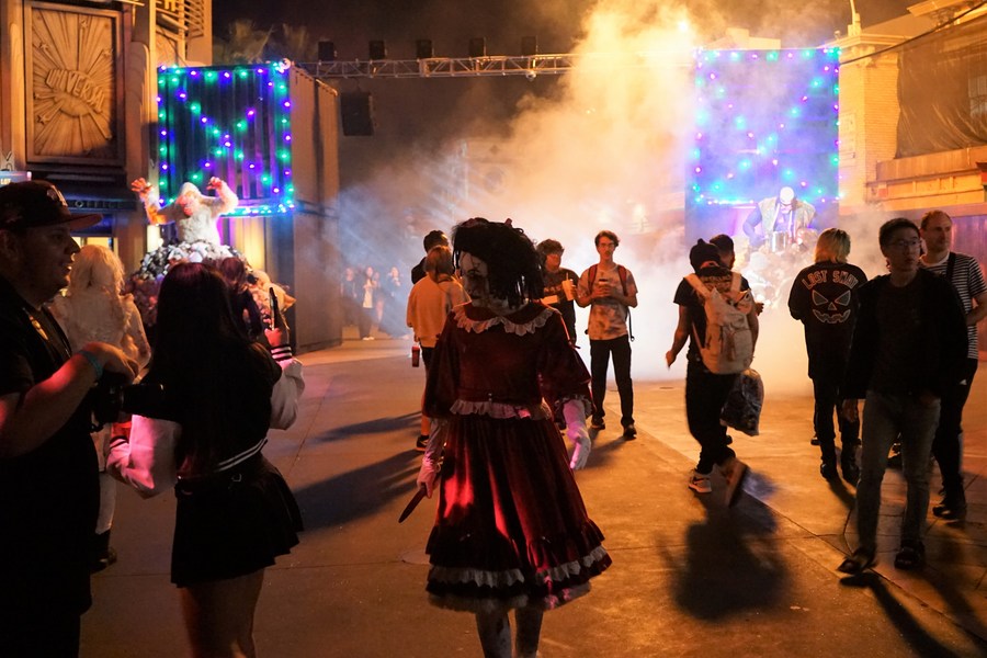 Visitors come for the opening night of Halloween Horror Nights at Universal Studios Hollywood in Los Angeles, California, the United States, on Sept. 7, 2023. (Photo by Zeng Hui/Xinhua)