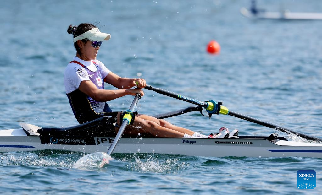 Japan's Chiaki Tomita competes during Lightweight Women's Single Sculls Final B race at the 2023 World Rowing Championship in Belgrade, Serbia, Sept. 8, 2023. (Photo by Predrag Milosavljevic/Xinhua)