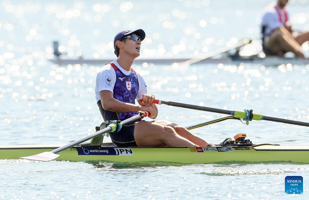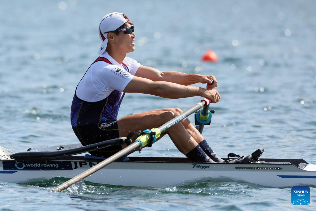 Japan's Ryuta Arakawa competes during men's single sculls semifinal race at the 2023 World Rowing Championship in Belgrade, Serbia, Sept. 8, 2023. (Photo by Predrag Milosavljevic/Xinhua)