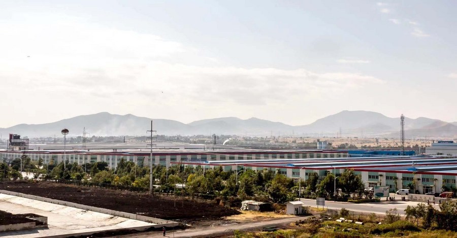 The file photo, taken on Dec. 7, 2018, shows the factories inside the Eastern Industrial Zone (EIZ) in the south of Addis Ababa, Ethiopia. (Xinhua/Zhang Yu)