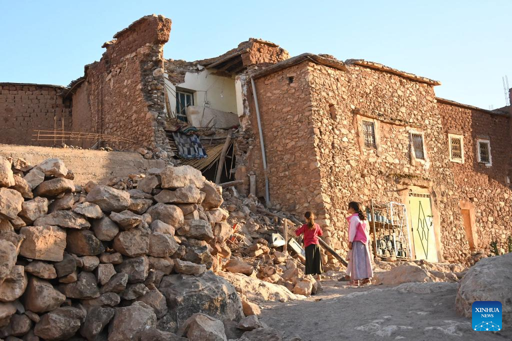 This photo shows damaged building near the epicenter at Amizmiz Village in Morocco, Sept. 10, 2023. A 6.8-magnitude earthquake hit Morocco Friday. The epicenter of the earthquake was near the town of Ighil in Al Haouz Province, some 70 km southwest of Marrakesh.