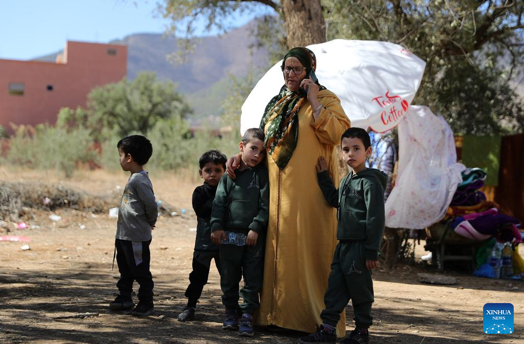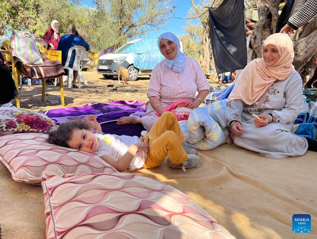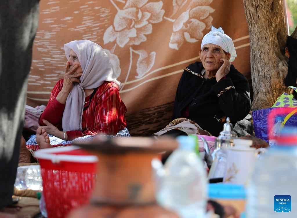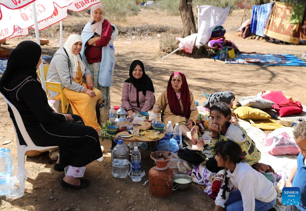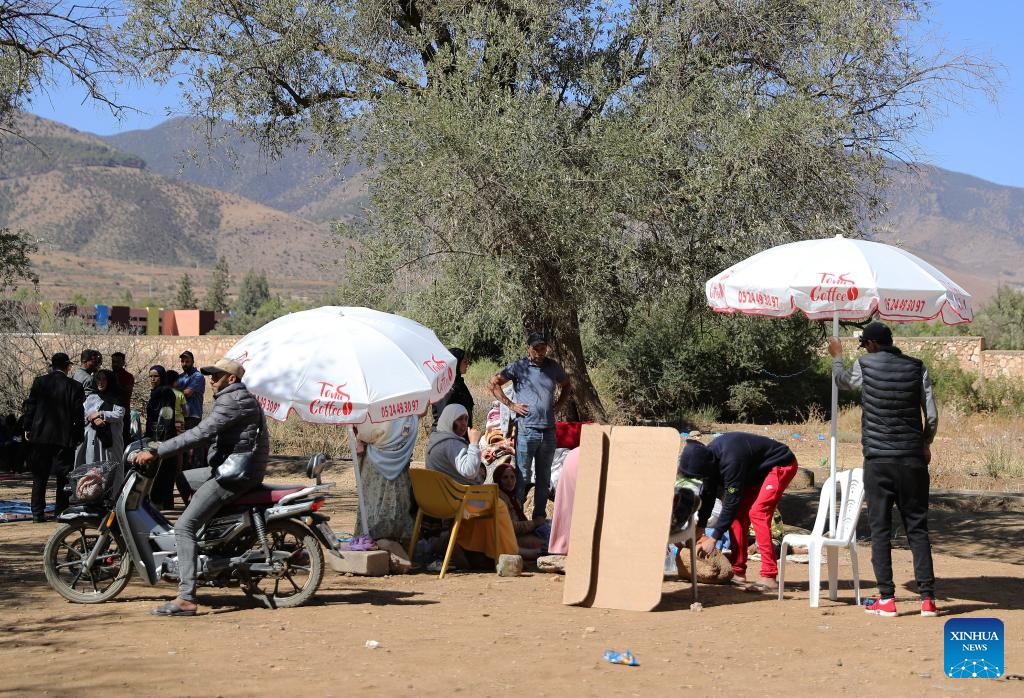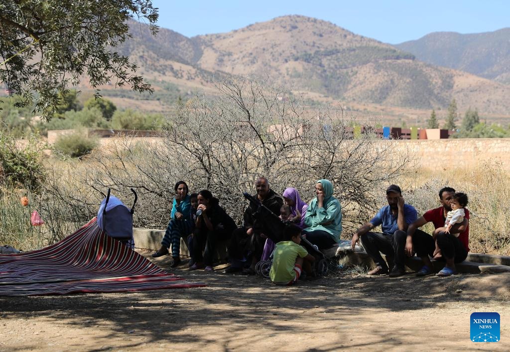 Residents take shelter in an open space near the epicenter at Amizmiz Village in Morocco, Sept. 10, 2023. A 6.8-magnitude earthquake hit Morocco Friday. The epicenter of the earthquake was near the town of Ighil in Al Haouz Province, some 70 km southwest of Marrakesh.