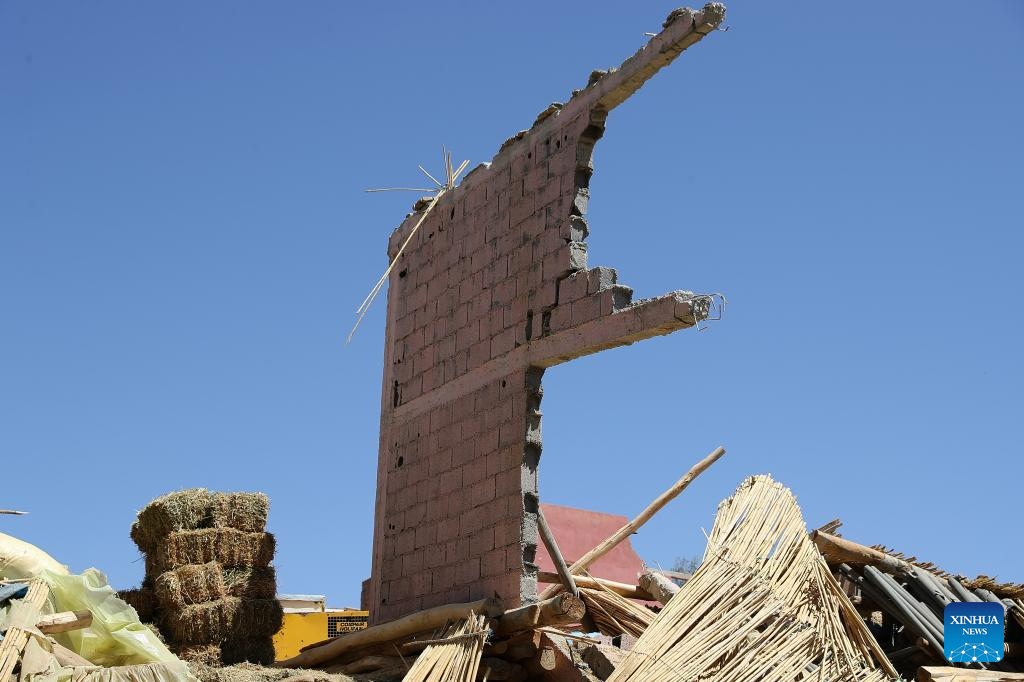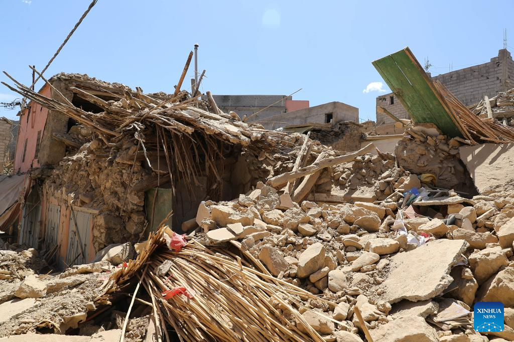 This photo shows damaged buildings near the epicenter at Amizmiz Village in Morocco, Sept. 10, 2023. A 6.8-magnitude earthquake hit Morocco Friday. The epicenter of the earthquake was near the town of Ighil in Al Haouz Province, some 70 km southwest of Marrakesh.
