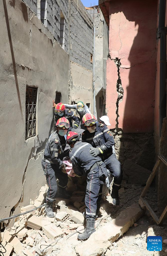 RABAT, Sept. 9 (Xinhua) -- Morocco on Saturday declared three days of national mourning after a devastating earthquake jolted the kingdom late Friday night.