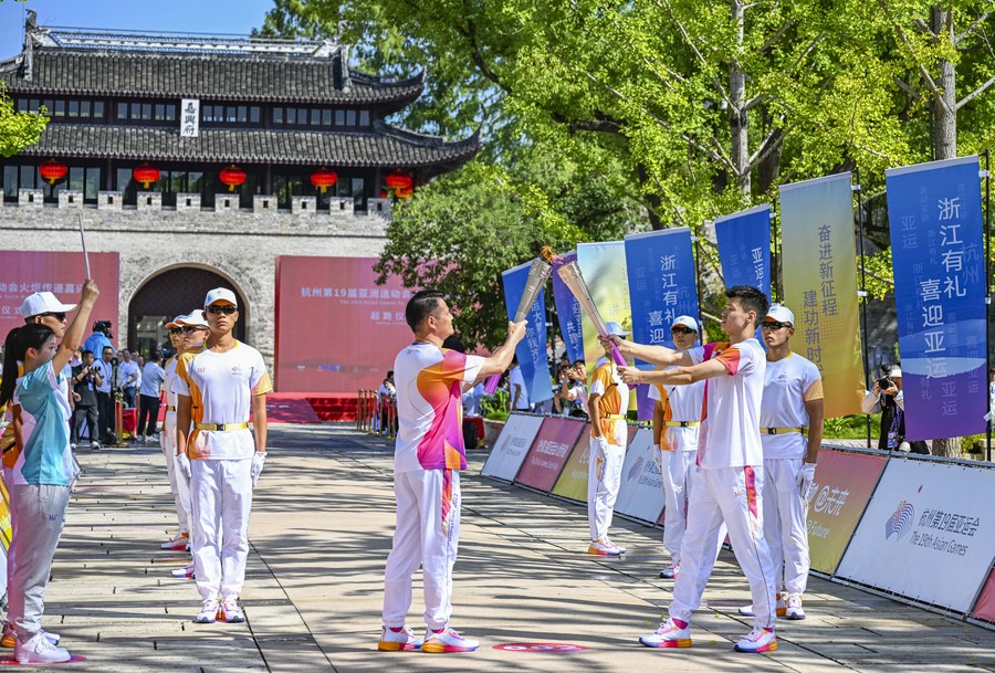 JIAXING, Sept. 10, 2023 (Xinhua) -- The torch relay for the 19th Asian Games continues in Jiaxing, east China's Zhejiang Province on Sunday.