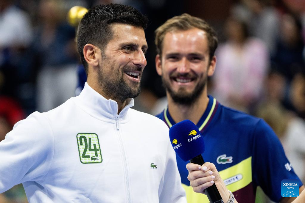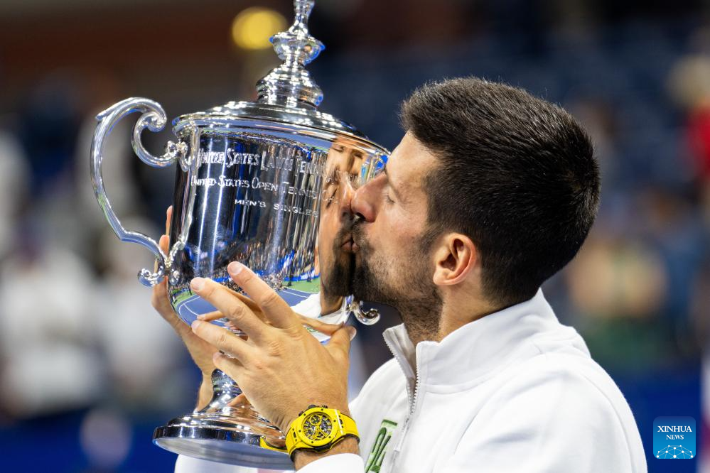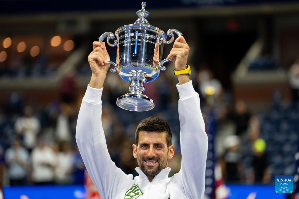 NEW YORK, Sept. 10 (Xinhua) -- Novak Djokovic won his fourth US Open and a record-tying 24th Grand Slam singles title after eliminating Daniil Medvedev in straight sets in the final here on Sunday.