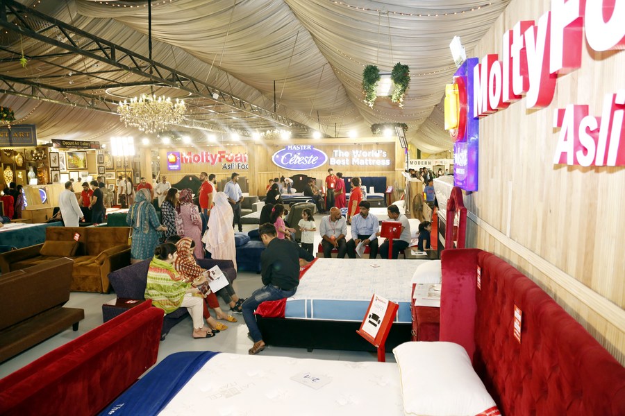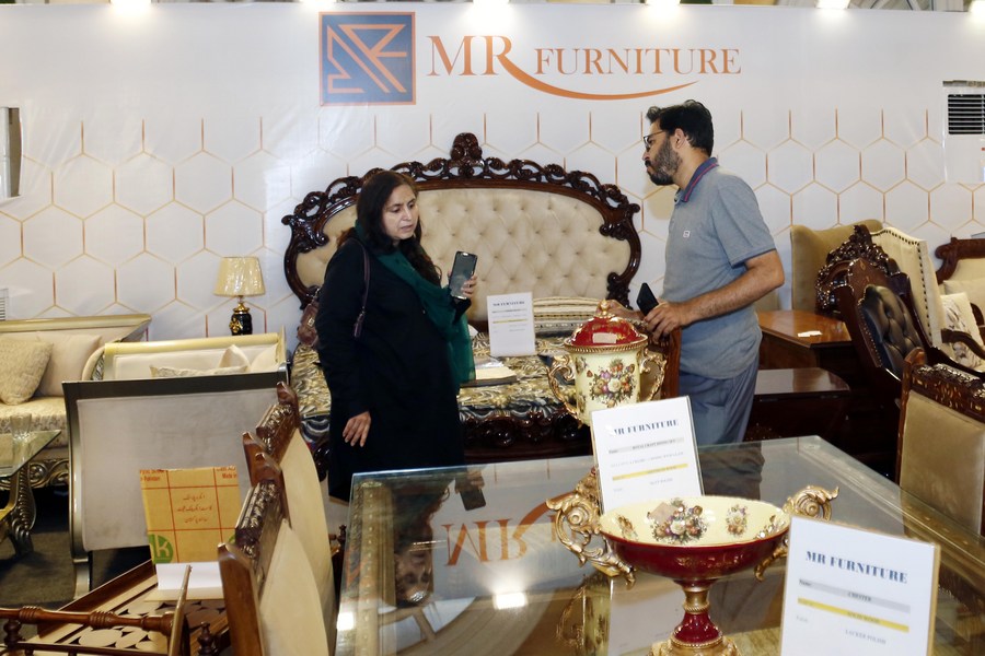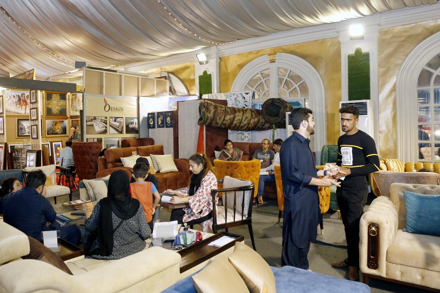 People visit the Home Decor and Furniture Expo in Islamabad, capital of Pakistan, on Sept. 10, 2023. (Xinhua/Ahmad Kamal)