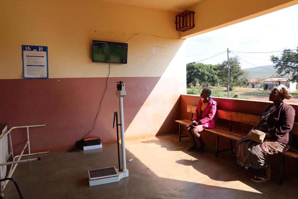 Villagers watch satellite television program at a rural hospital in Goba Village, Maputo Province, Mozambique, July 26, 2023. (Xinhua/Dong Jianghui)