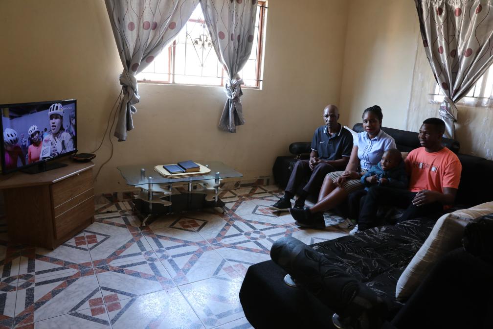 Nunes Guardagea and his family watch a television program at home in Matola, Maputo Province, Mozambique, July 28, 2023. (Xinhua/Dong Jianghui)