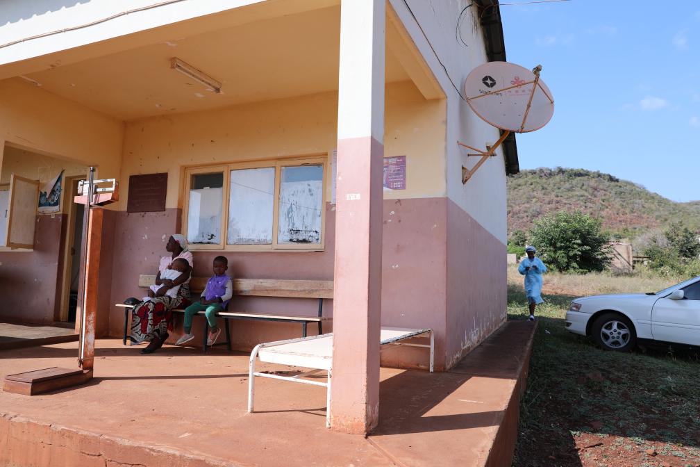 Villagers wait to see a doctor at a rural hospital equipped with Chinese-aided satellite television receiving antenna in Goba Village, Maputo Province, Mozambique, July 26, 2023. (Xinhua/Dong Jianghui)