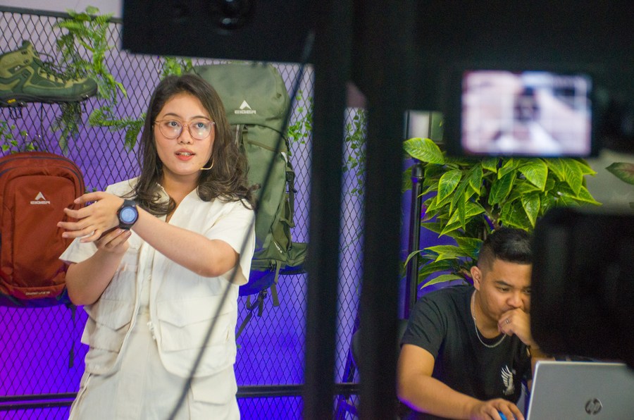 Aufia Nisa, 24, hosts livestreaming fashion products as a side, usually in the evenings or on weekends, in between her work as an employee at a government office in Bandung.