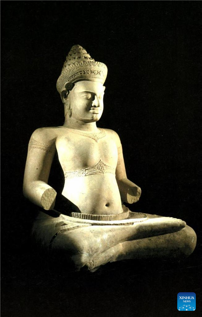 This undated photo shows a sculpture, which is thought to be Drsthadyumna (commander in chief of the Pandava Army), returned to Cambodia from the United States. The family of a U.S. private collector, George Lindemann, has returned 33 stolen cultural artifacts to Cambodia, the Cambodian Ministry of Culture and Fine Arts said in a statement on Wednesday. (Cambodian Ministry of Culture and Fine Arts/Handout via Xinhua)