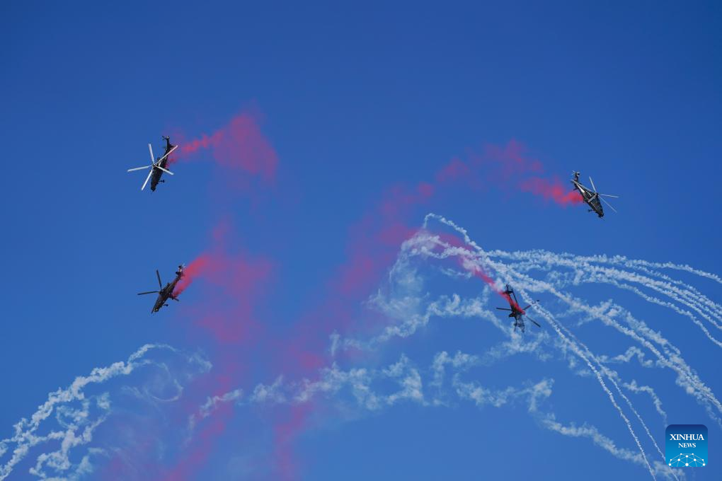 Spanning an exhibition area of approximately 160,000 square meters, the expo has a total of 65 helicopters and unmanned aerial vehicles (UAVs) on display, drawing over 350 exhibitors, including many major global helicopter manufacturers. Diverse exhibits featuring technologies such as artificial intelligence, virtual reality and human-machine interaction are also being showcased.