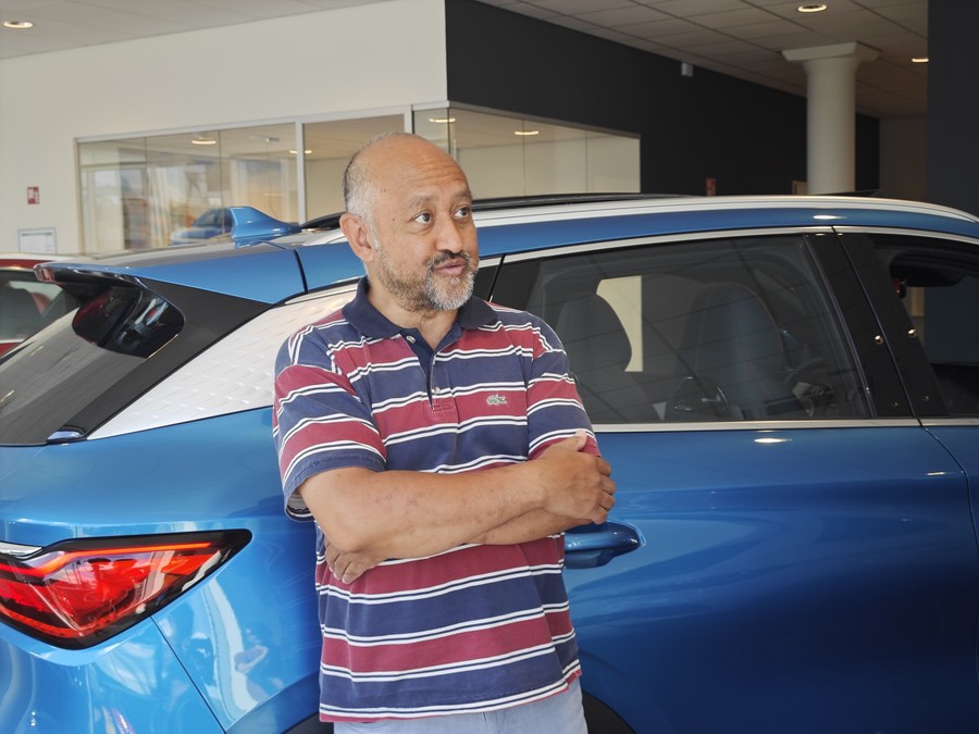 This photo of BYD customer Ben Malawau was taken during an interview with Xinhua in BYD's Rotterdam showroom, Aug. 15, 2023. (Liu Yuxuan/Xinhua)