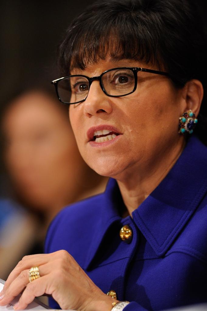 U.S. Commerce Secretary Penny Pritzker testifies before Senate Subcommittee on Commerce, Justice, Science and Related Agencies on the Fiscal Year 2016 funding request and budget justification for the U.S. Department of Commerce, at Capitol Hill in Washington, D.C., the United States, Feb. 26, 2015. (Xinhua/Bao Dandan)