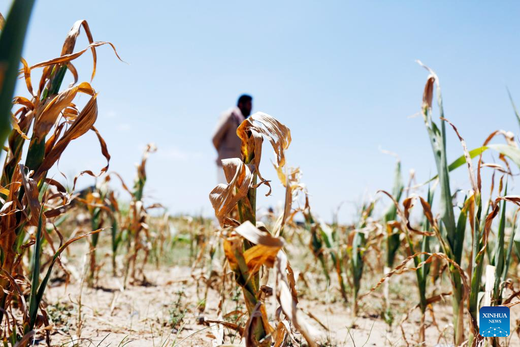 Photo taken on Aug. 25, 2023 shows wilted crops on the outskirts of Sanaa, Yemen. The Yemeni people, already burdened by yearslong turmoil, now face another challenge posed by the unrelenting severe drought, a disaster brought on by climate change. (Photo by Mohammed Mohammed/Xinhua)